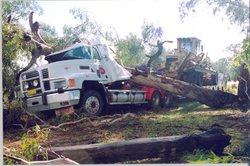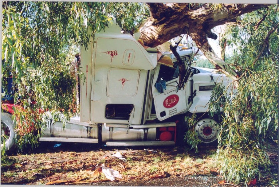 | A large tree fell on the cab of this truck on Kaputar Rd. Thankfully nobody was in the cab at the time. Photo by Romy Grammer. | A different photo of the truck. Photo by Romy Grammer. | ||