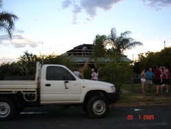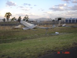 Earlier that day, the Bureau of Meteorology had issued a severe thunderstorm warning for the area encompassing Narrabri. Other severe thunderstorms were also experienced throughout NSW, including a tornado near Coonabarabran, which has been well documented on the web by Rob McNaught and friends, and also by Michael Bath here. Also see the BoM's January 2005 Significant Weather page for a list of events on this day.