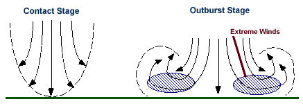 downburst, occurring when a parcel of dense cold air rapidly falls from a storm