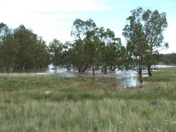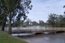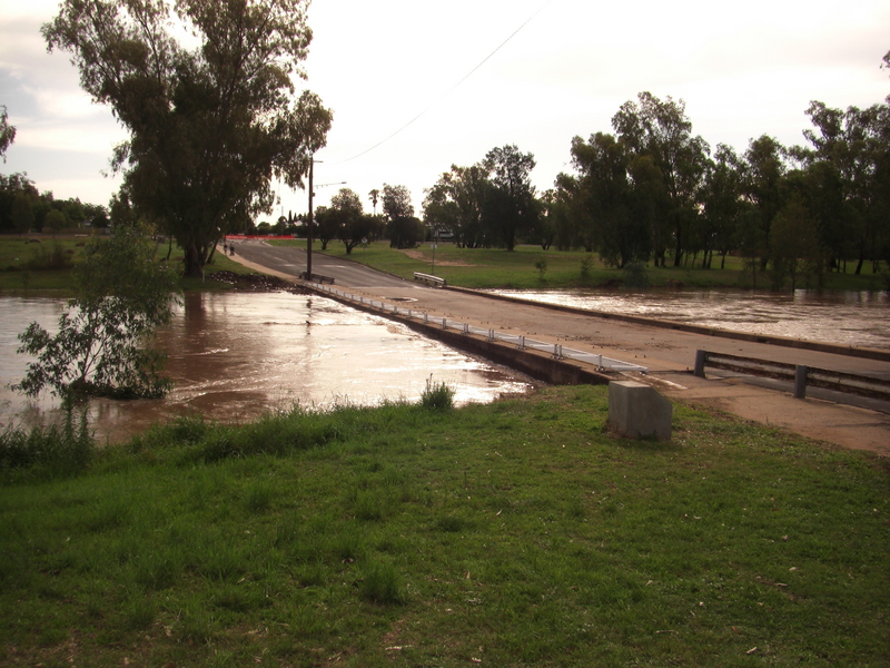 On 28 November 2008 up to 200mm fell around Tamworth and over 100mm was recorded over a fairly large area including Gunnedah. About 50mm had been recorded in Narrabri Shire over the period, however it was the rain upstream which caused the flooding. In Narrabri and Wee Waa any sign of the local rain had dried up by the time the flood was peaking.