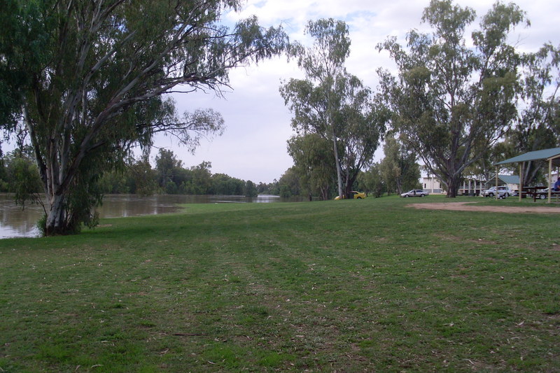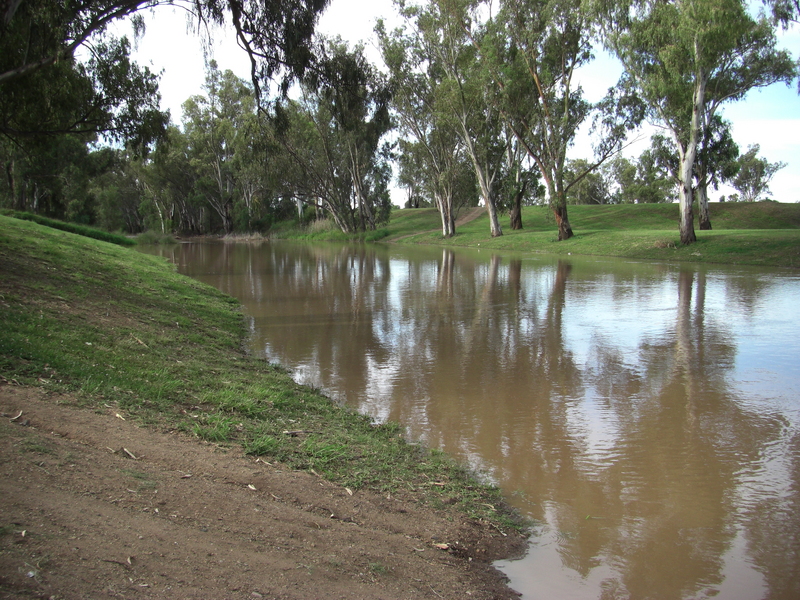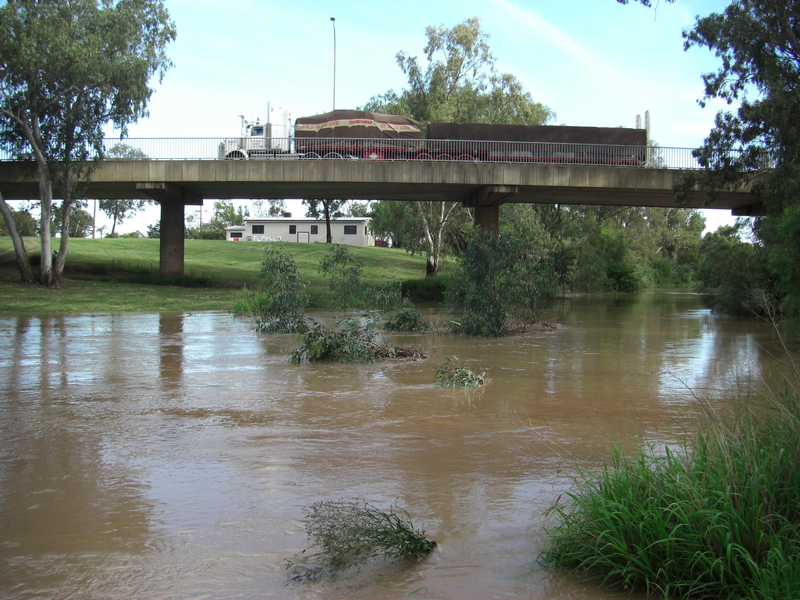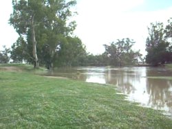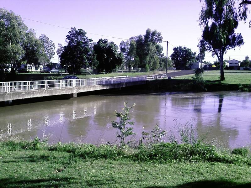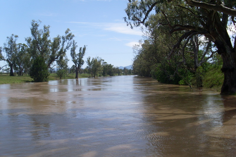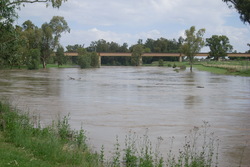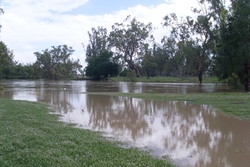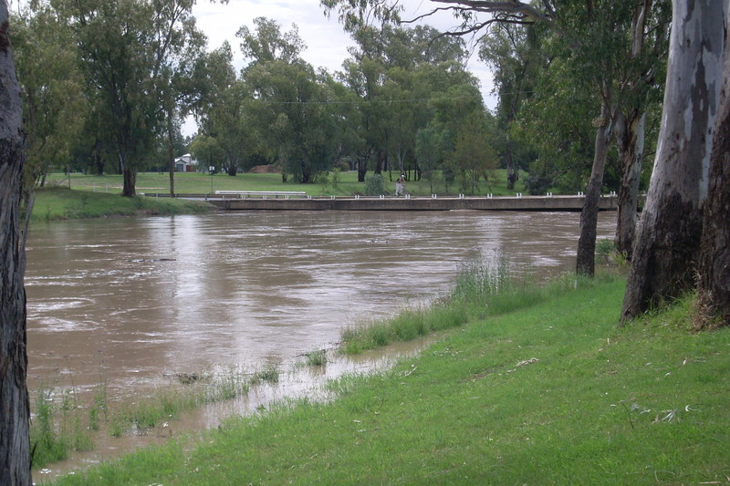 In Narrabri the initial onset of the floowater was very rapid, with the river rising 2m in an hour or two. On the 2nd of December the headline story in The Courier was a sequence of photos by Vince Haire showing the river rise by more than the height of a star picket over just 23 minutes!
